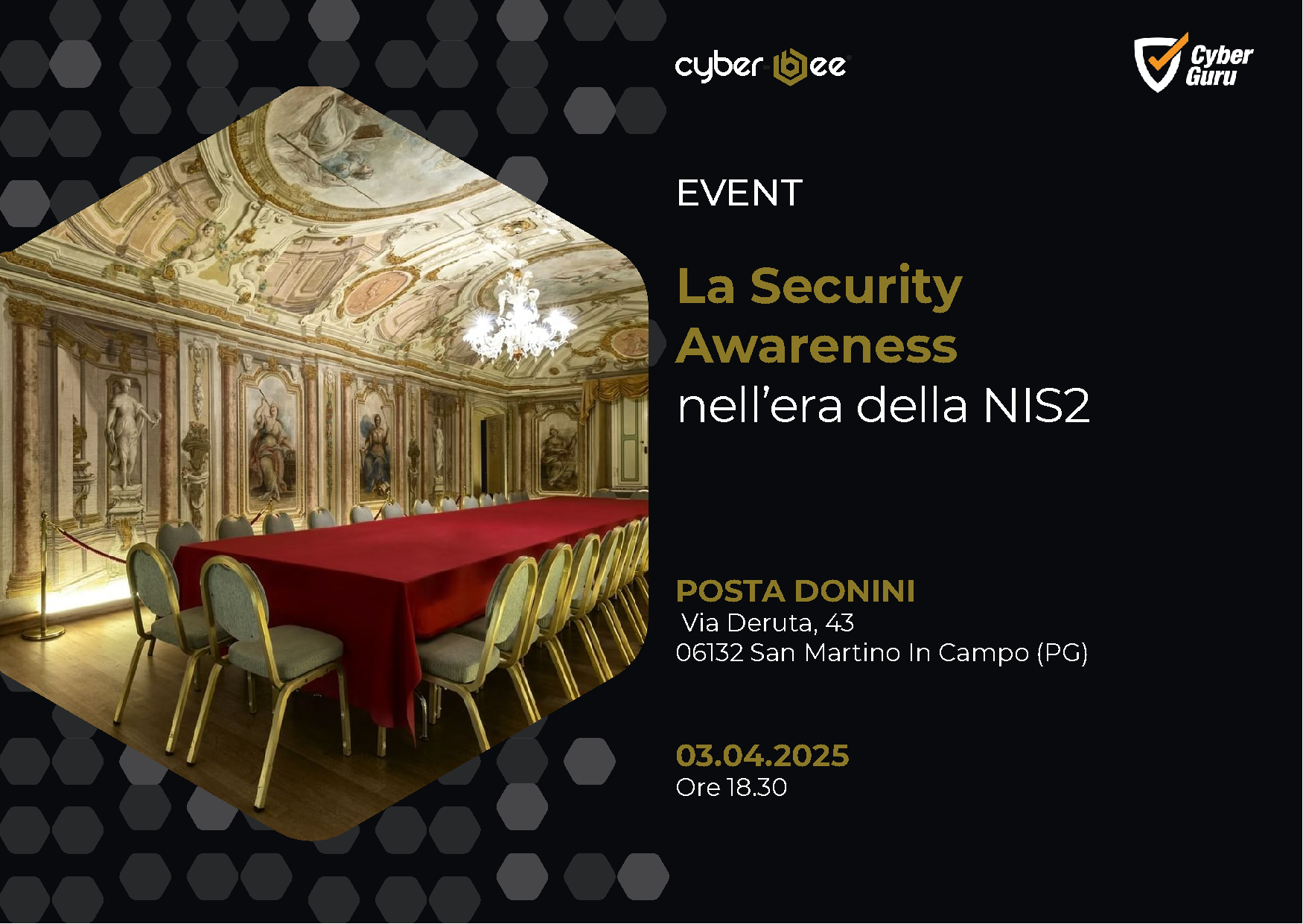 On Thursday, April 3, with Cyber-Bee and Cyber Guru, we talked about this at Posta Donini, a period residence , in the heart of Umbria, immersed in a refined and unique atmosphere.