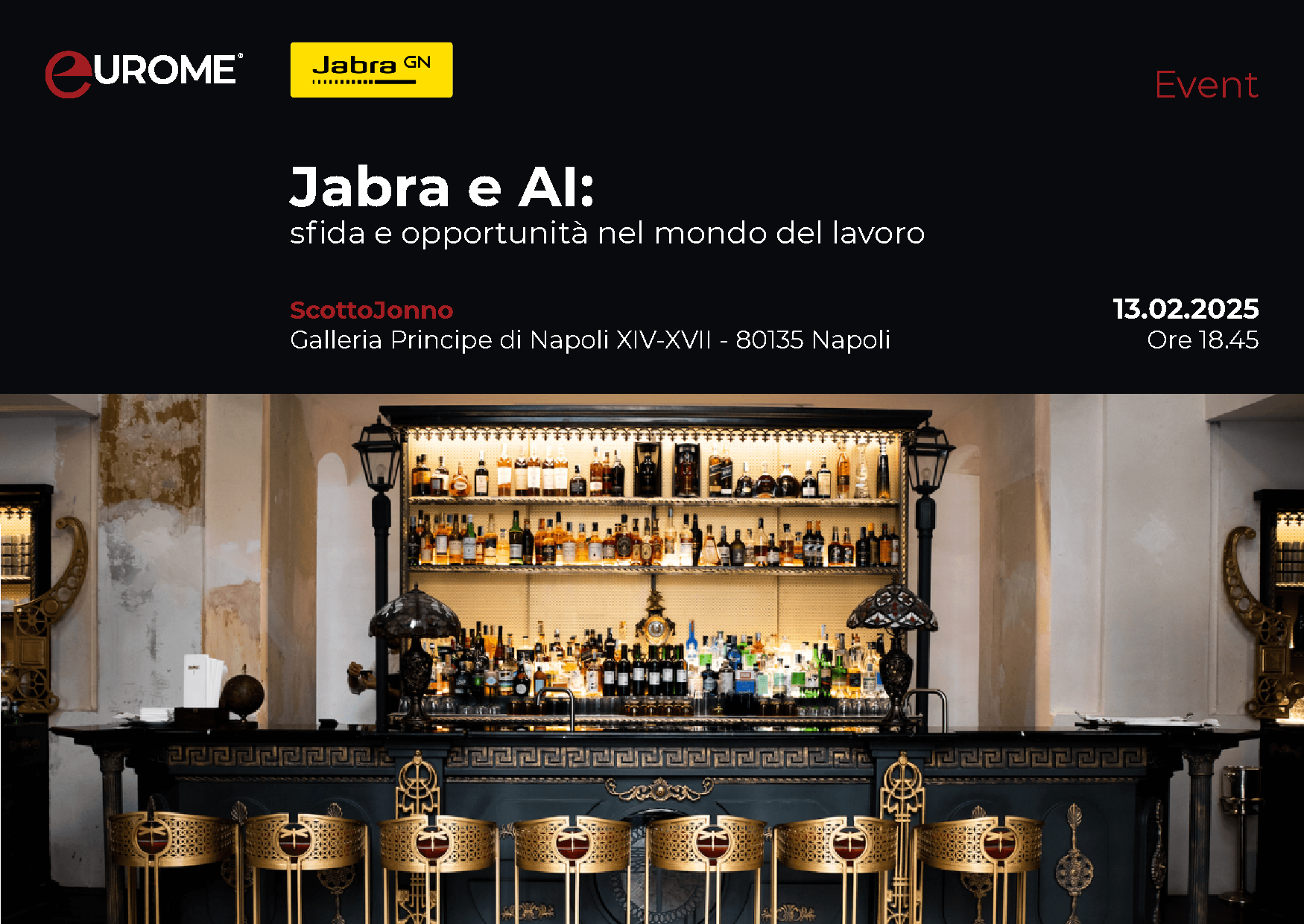 Eurome ha organizzato, il 13 febbraio, insieme a Jabra un’ attività dove dove abbiamo esplorato da vicino il futuro del workplace e della collaboration per capire come cogliere al meglio le opportunità dell’hybrid working e dell’Intelligenza Artificiale e garantire efficienza e produttività in un mondo sempre più connesso.