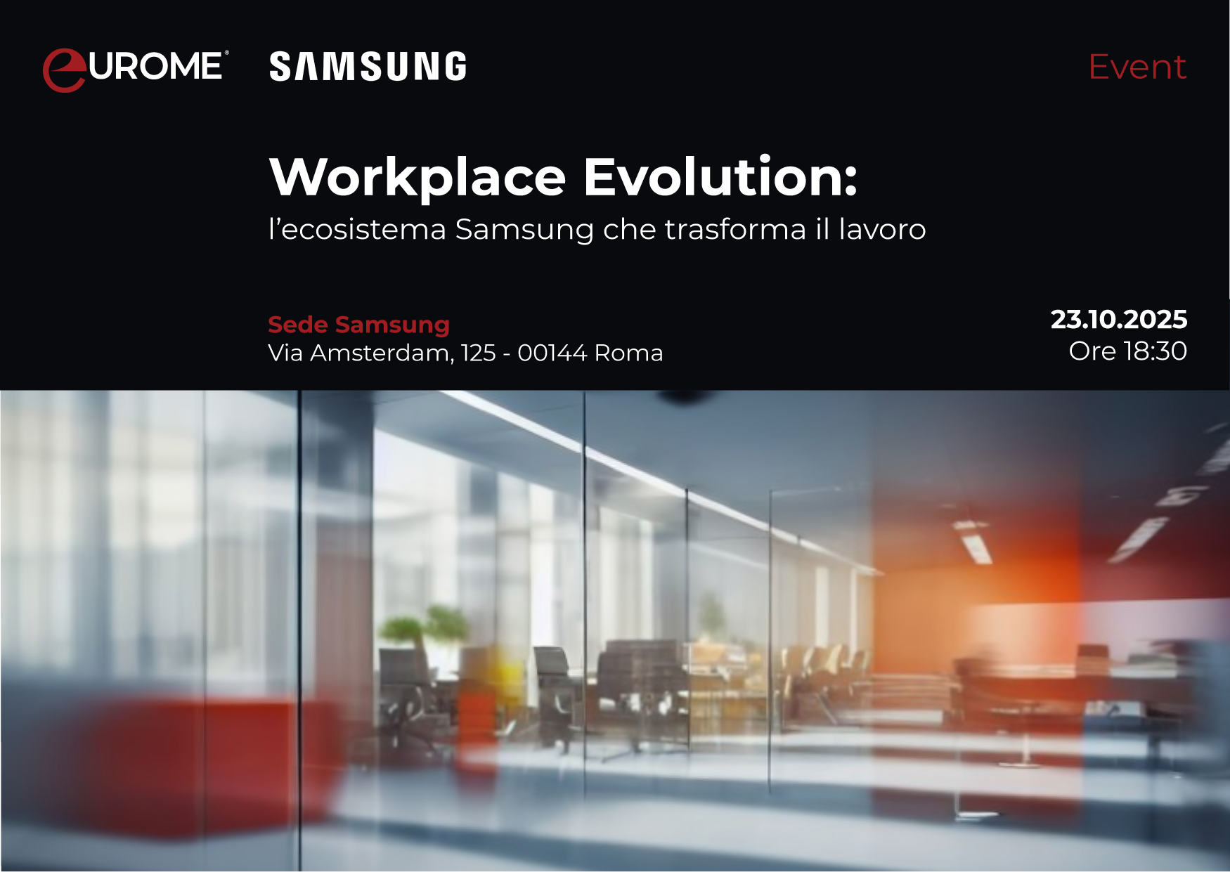 Il 23 ottobre Eurome ha organizzato presso la sede Samsung di Roma un evento dedicato all’evoluzione del lavoro, coinvolgendo aziende e professionisti in una riflessione concreta sul futuro degli ambienti di lavoro.